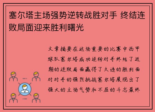 在意甲联赛的激烈竞争中,那不勒斯一直是争冠的有力竞争者。最近,在一场艰难的客场比赛中,他们凭借坚韧的表现逆袭成功,最终获得了宝贵的三分。这场比赛不仅提升了球队的士气,也为他们在争冠道路上注入了强大的动力。本文将从多个角度详细分析那不勒斯如何...